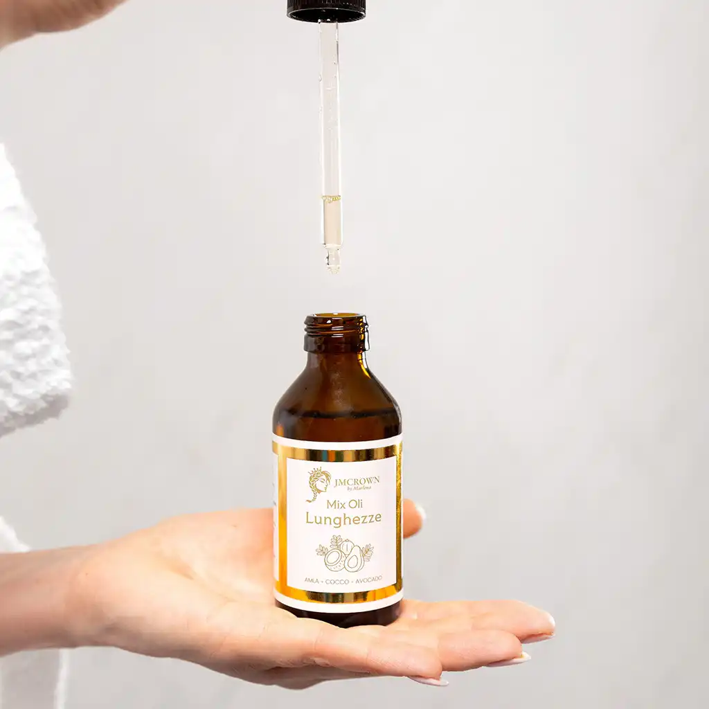 Una volta applicato il mix oli cuoio capelluto, puoi passare al secondo step: prenderti cura delle lunghezze dei tuoi capelli. Applica l’olio lungo tutta la lunghezza dei tuoi capelli, e lascia che penetri lentamente nelle fibre. Un gesto di cura che avvolge la chioma come una coccola.